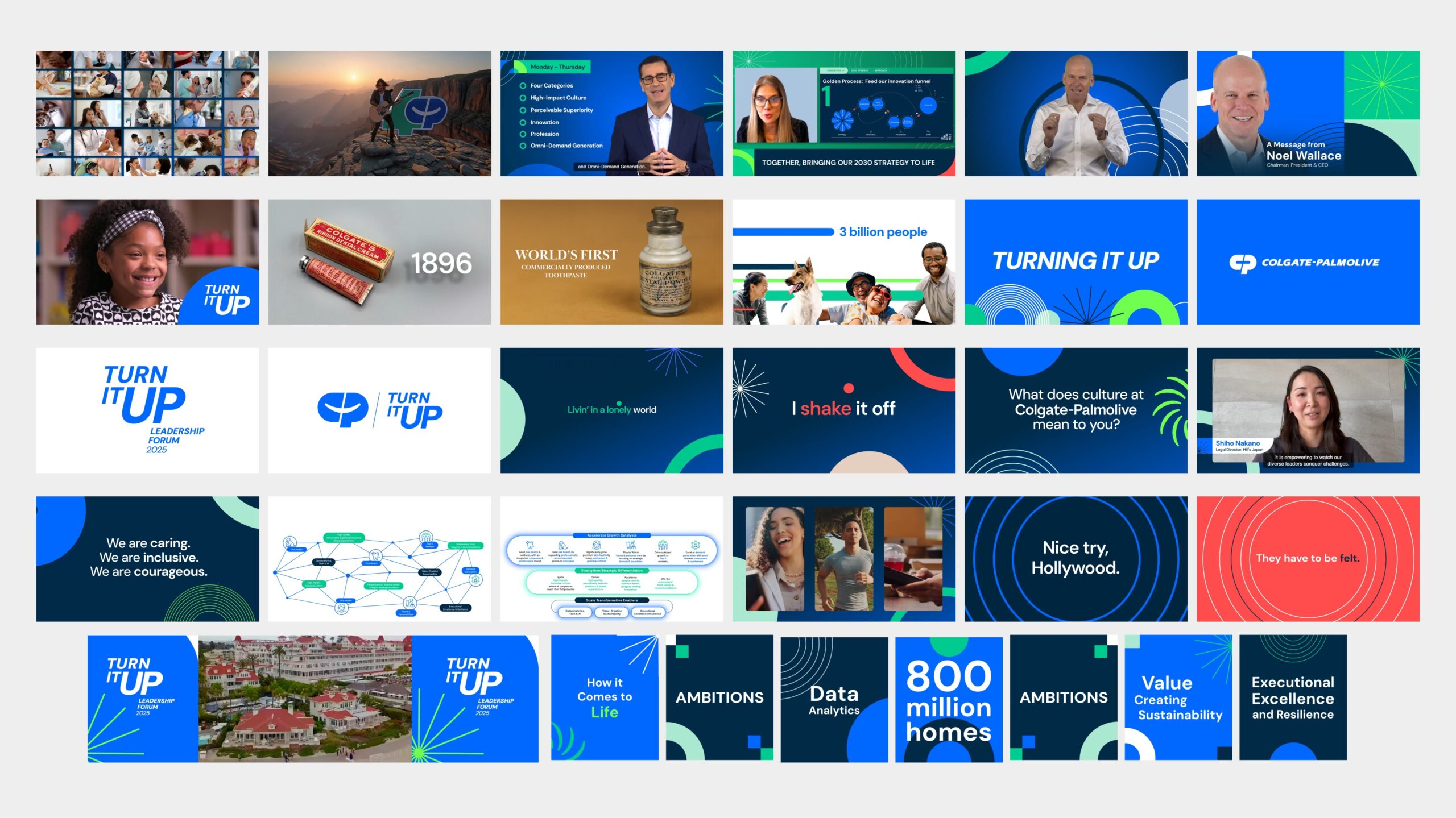 The Colgate-Palmolive Leadership Forum is an annual internal event bringing together senior executives and global team leads. DGNL was tasked with producing a series of branded video deliverables (including opening sizzles, speaker intros, panel interstitials, and recap reels) to be shown throughout the live forum and in pre-event communications.